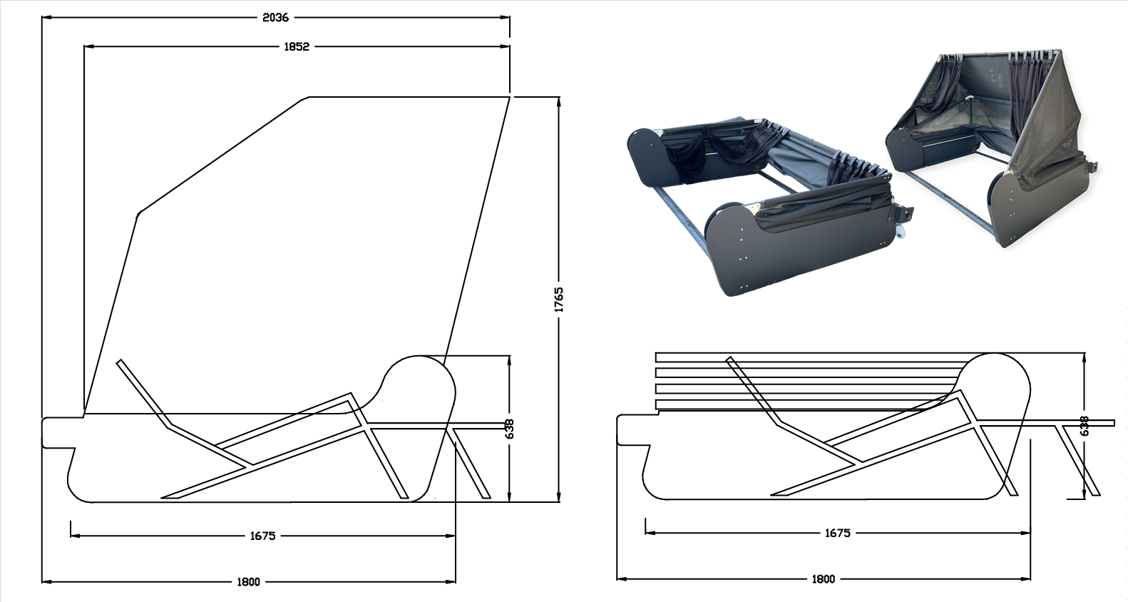 İç mekân genişliği sayesinde çift kişilik şezlong, yatak, masa ve sandalye gibi farklı eşyalar rahatlıkla yerleştirilebilir.